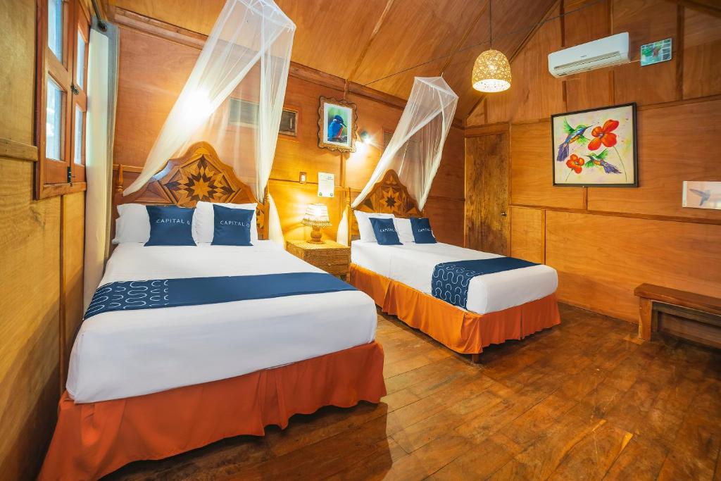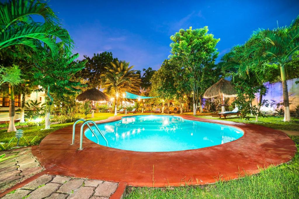 El hotel Capital O Villa Colibrí Bacalar es un pintoresco hotel que está rodeado de un jardín selvático y cuenta con una piscina exterior y un parque infantil.