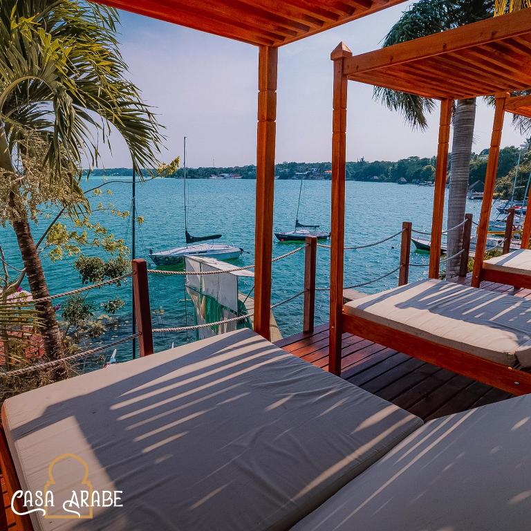 Contando con una piscina al ire libre, con bar, con terraza, ubicado frente a la laguna, con habitaciones familiares y con traslado gratuito al aeropuerto de Chetumal, Casa Árabe Bacalar se convierte en una muy buena opción para pasar tus vacaciones en este bello pueblo mágico de Quintana Roo.